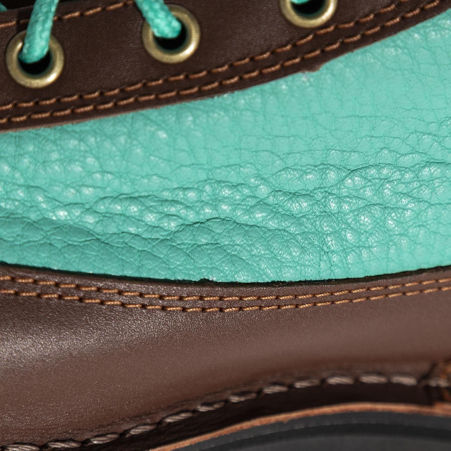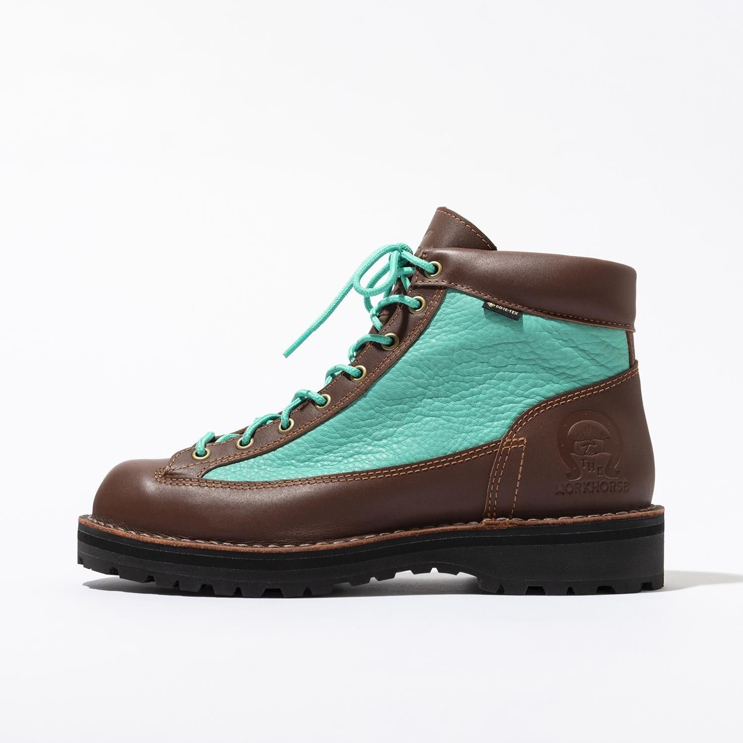 ポートランド近郊、タイガード出身のElliot Wescottは結婚を機に妻の故郷東京に移住、ヘヴィブルースバンド”KNOW YOUR MOUNTAIN”の元メンバーだが音楽活動からは距離を置きデザイナーとして生計を立てていた。2013年、休暇中に訪れた高尾山にて観光で来日していた元KYMのDoug Ellingtonと偶然の再会を果たす。これを機に元メンバーと連絡を取り合うようになり、音楽ファイルを介しての楽曲制作を再開したと言われている。学生時代、アウトドアストアの店員や常連客で結成、20代前半の若者達が奏でる、その年齢と容姿からは想像できない楽曲が話題となっていたKYM。2013年当時、30代となった元メンバーは東京、ポートランド、シカゴに在住し、デザイナー、靴職人、コーヒーロースター、バイクメカニック、主婦とそれぞれ別々の道を歩んでいた。2015年、バンド名を"THE WORKHORSE”として正式に活動を再開。バンド名はKYMのヒット曲”THE WORKHORSE”に由来する。活動再開後の音楽性は以前とは異なり、コーラスワークを基調とした浮遊感のあるサイケデリックな世界観が特徴。ライブ活動はポートランドと東京での夏季数回のみに限定されるものの、音源のリリースは活発に行っている。”Dogtooth RIdge(2016)”、”Mt.Tengu(2017)”、”Silver Falls(2018)”は必要最小限の機材を用いて各地でライブレコーディングされた3部作として評価が高い。毎夏のみ集まり、それ以外はそれぞれ別の仕事に従事しているのが心地よい距離感だ、とメンバーは口を揃える。ライブ出演時には皆ダナーのブーツを履いている事でも知られているが、結成のきっかけとなったアウトドアストアでお揃いのダナーブーツを購入した事に起因しているとされている(前述の”Dogtooth Ridge”に収録されている” Go Deer Diner with My Danner”で歌われている、遊びに行ったらみんなお揃いのダナーを履いていて恥ずかしかった、というエピソードは有名)。今回販売されるブーツは”Mt.Tengu”リリース時に作成、東京でのみ販売されたマーチャンダイズや関係者用に作成された”THE WORKHORSE exclusive(通称チョコミント)”の復刻版。メンバーのブーツに焼印されたバンド名や意図的に点けられたつま先のスクラッチが型押しや刺繍で再現されている。